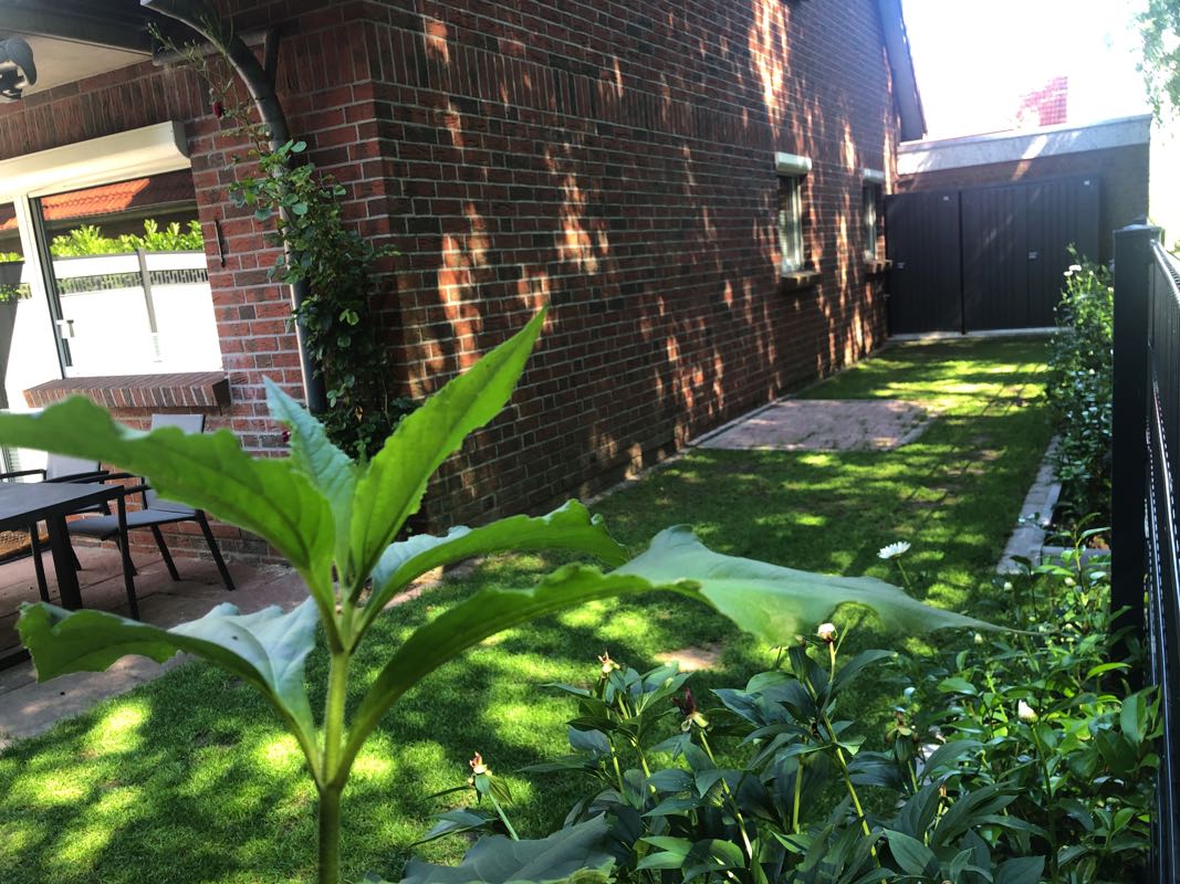 • Kleiner Garten mit Zugang zu einer Grünfläche und zur Harle