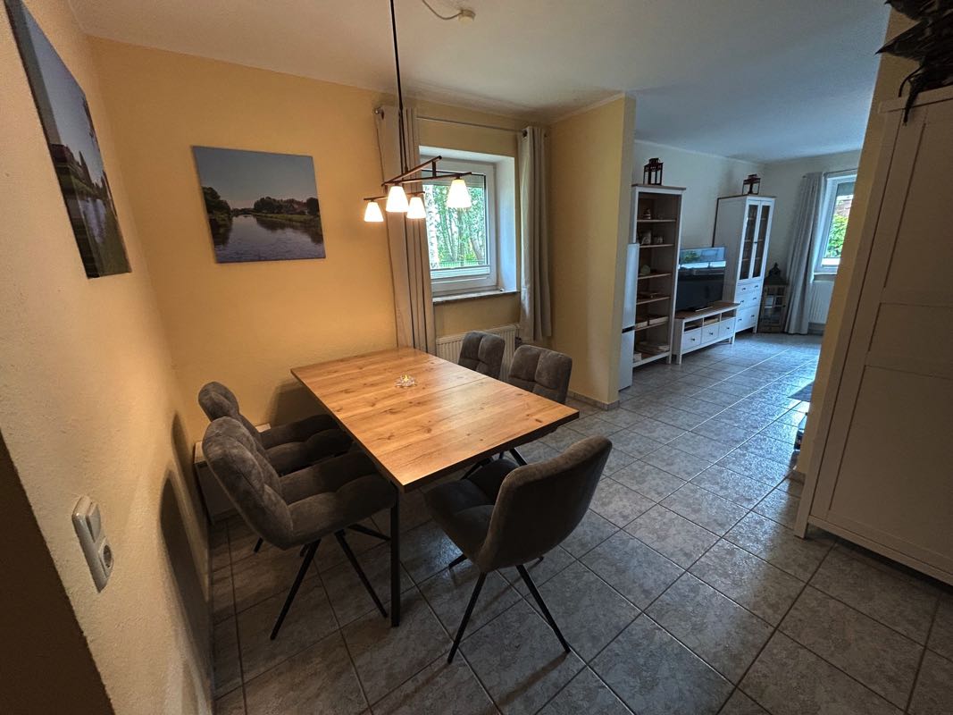 Direkt an den Garten grenzend erreichen Sie durch das Gartentor eine grüne Freifläche, die an den Fluss Harle grenzt.